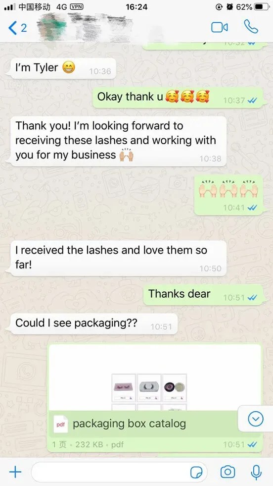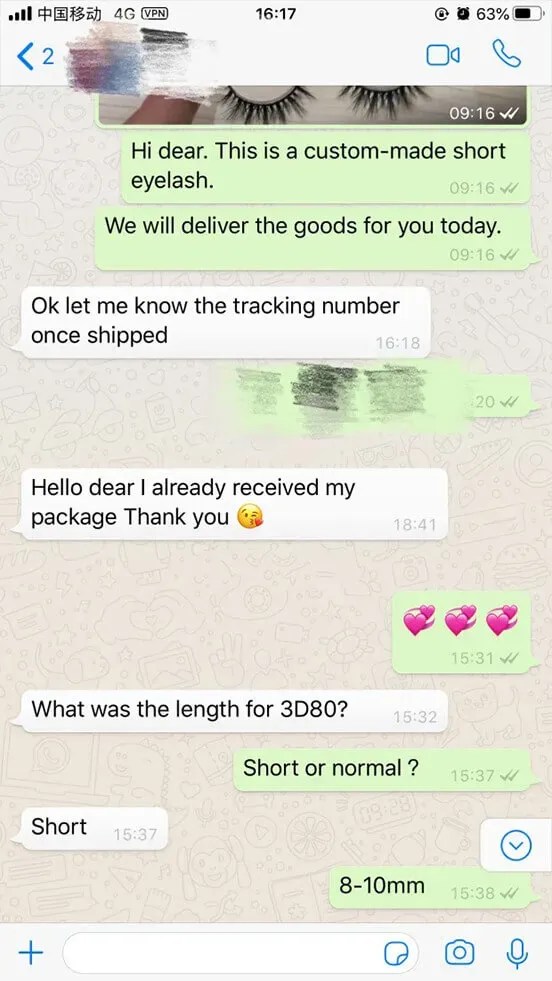 Sales department and huge after-sales service department: We share our eyelashes with our customers or talk about the details of eyelashes with them patiently. Because some of them really trust us, they ask help for us. For example, they hope we can give some advise to choose the best eyelashes for them, even there are thousands of eyelashes they can choose. At the same times, if your want print your own logo or design your unique picture on the eyelash boxes, they have rich experience to help you. Surely, you can also ask help with them after buying. They will try their best to do what disturb you. Any question, any time.