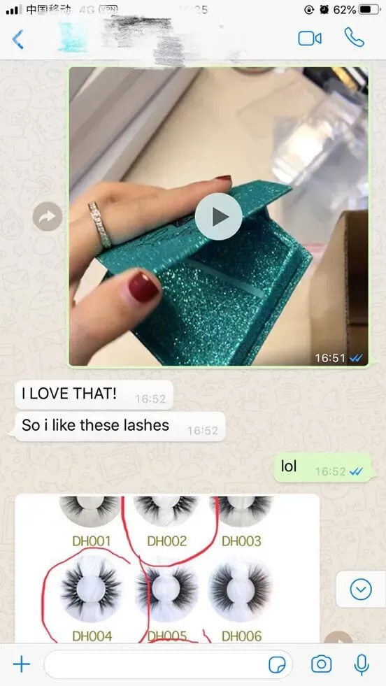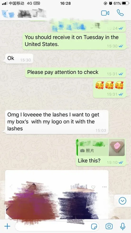 Sales department and huge after-sales service department: We share our eyelashes with our customers or talk about the details of eyelashes with them patiently. Because some of them really trust us, they ask help for us. For example, they hope we can give some advise to choose the best eyelashes for them, even there are thousands of eyelashes they can choose. At the same times, if your want print your own logo or design your unique picture on the eyelash boxes, they have rich experience to help you. Surely, you can also ask help with them after buying. They will try their best to do what disturb you. Any question, any time.